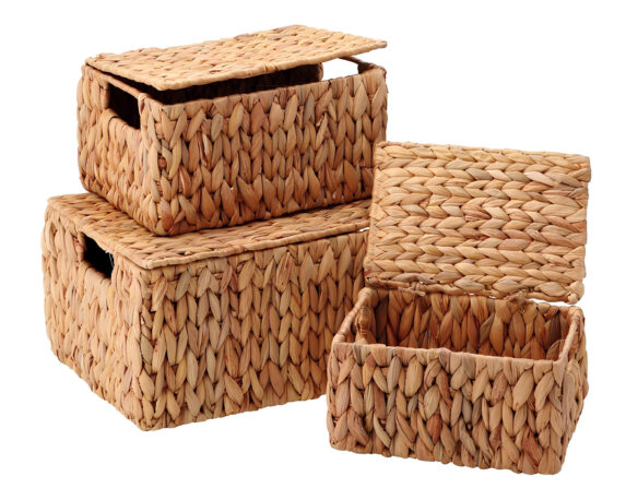 Cesta Contenitore Elios con Copertchio Naturale S 23x17x12cm in Giacinto d’Acqua