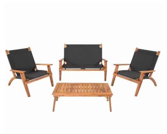 Set 4 Pz Salotto Primavera Pieghevole Nero in Legno di Acacia