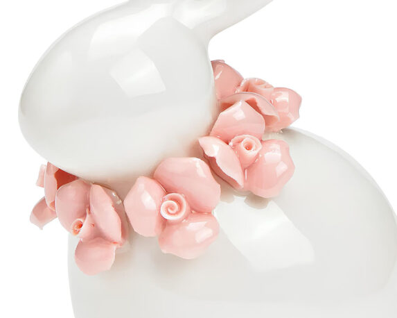 Coniglietto in Piedi Bianco con Fiori Decorativi 10x8x17cm in Porcellana