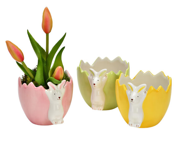 Vasetto con Coniglio Decorativo Colorato Assortito 8x9x11cm in Ceramica