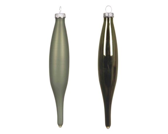 Set 6 Pz Pendenti Icicle Verde Pino D3x15cm in Vetro