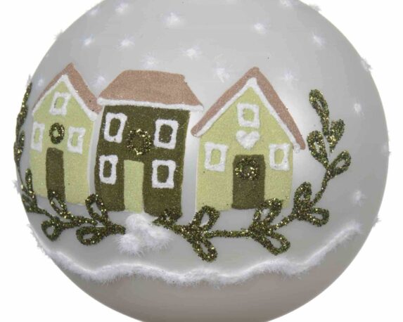 Set 3 Pz Sfera Bianca con Casette di Marzapane e Neve D8cm in Vetro