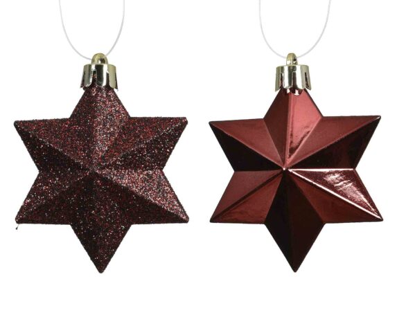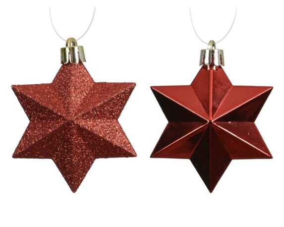 Set 12 Pz Pendenti a Stella Rosso Assortito 9x9x12cm in Poliestere