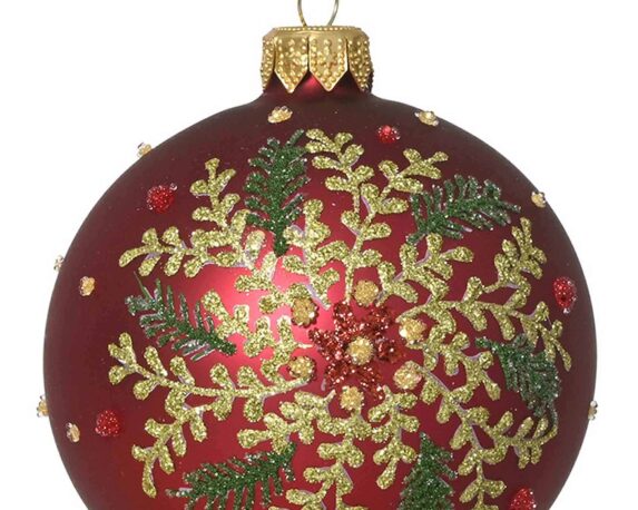 Sfera Rosso e Verde con Corona Decorativa Dorata Assortito D8cm in Vetro