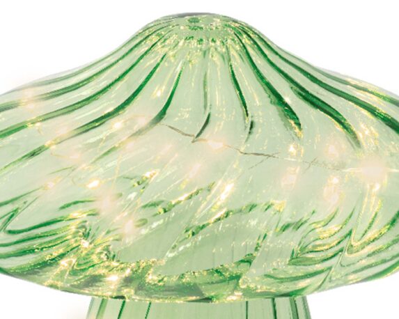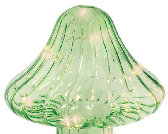 Decorazione Fungo Verde con Microled 16,5h in Vetro