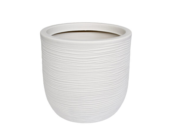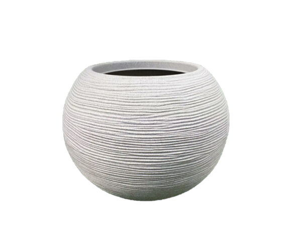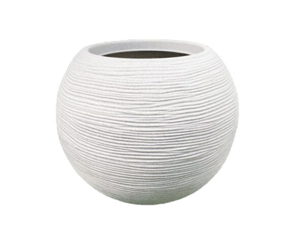 Vaso Sfera Rigata Shabby Bianco Perla D50cm in Resina