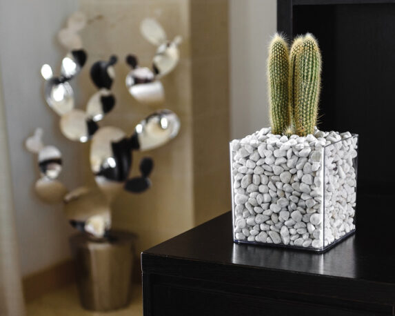 Vaso Sfera Rigata Shabby Bianco Perla D30cm in Resina