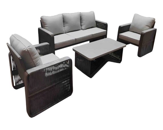 Set 4 Pz Salotto Maiorca Grigio in Alluminio, Corda e Tessuto