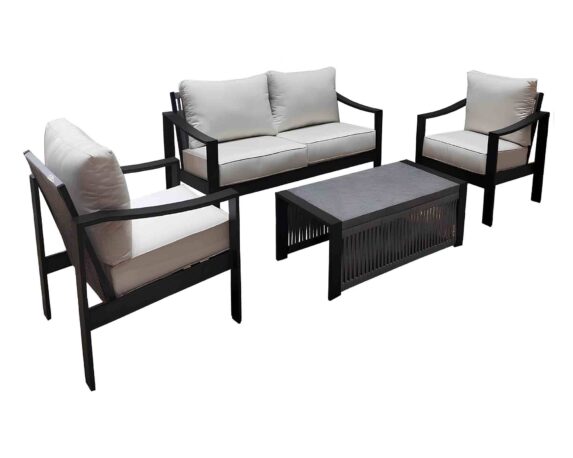 Set 4 Pz Salotto Ibiza Antracite in Alluminio, Corda e Tessuto