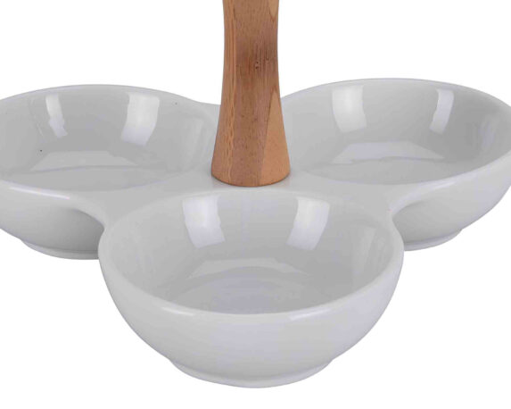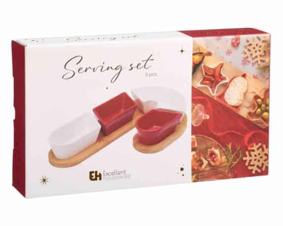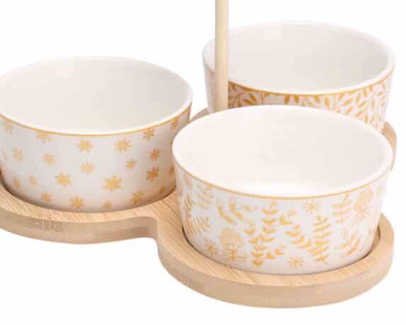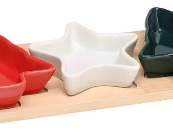 Set 4 Pz Aperitivo di Natale con Vassoio e 3 Ciotole 33x17x9cm in Ceramica e Bamboo – Arca