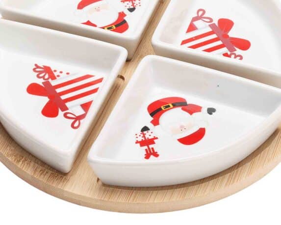 Set 5 Pz Antipastiera di Natale a Forma di Caramella 29x17x4,5cm in Ceramica e Bamboo