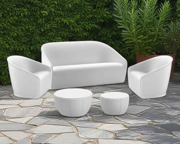 Set Salotto Gumball con 2 Poltrone e Tavolino Bianco in Polipropilene