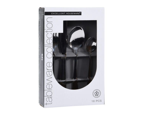 Set 16 Pz Posate da Tavola Nero in Acciaio
