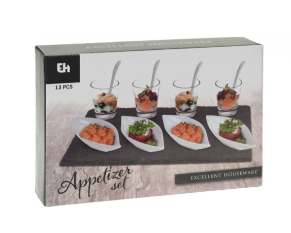 Set 13 Pz Appetizer con Supporto Ardesia Assortito in Ceramina