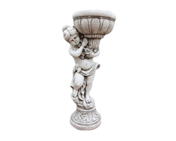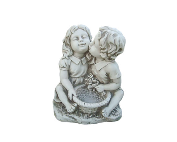 Statua Bambini Bacio con Fontanella Bianco in Resina