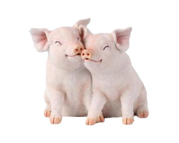 Statuetta Coppia di Maiali Innammorati Seduti Rosa in Resina