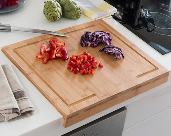 Tagliere con Vassoio a Scomparsa in Bamboo e Acciaio