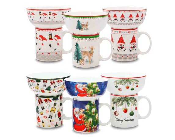 Set da Colazione con Tazza e Ciotola Natalizia Assortito D12,5×9,5cm in Porcellana – Arca