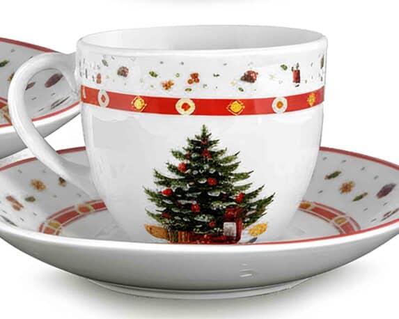 Set 2 Pz Tazzina con Piattino di Natale D14x6cm in Porcellana – Arca