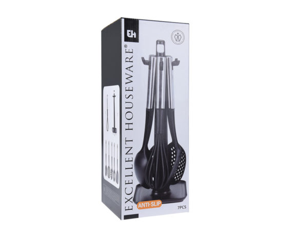 Set 4 utensili da cucina in legno c/contenitore bamboo