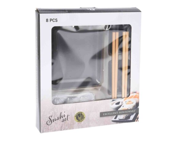 Set 8 Pz Servizio Servizio per Sushi 27x25x4,5cm in Bamboo e Porcellana