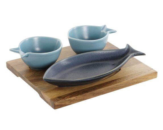 - Materiale: Legno di acacia e Porcellana